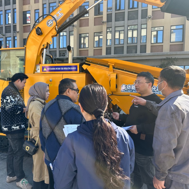 تُعدّ آلة الفرز JG100SF للسكك الحديدية، المنتج الرائد لشركة جينغونغ، مصممة خصيصًا لأعمال الحفر والفرز في هندسة السكك الحديدية. وقد حاز أداؤها الفعال والموثوق على إعجاب العملاء الإندونيسيين. خلال هذا الاختبار، شاهد العملاء عرضًا توضيحيًا لعملية الفرز التي تقوم بها الآلة، بما في ذلك سلاسة تشغيلها في صيانة مسار السكة الحديدية ومعالجة المواد السائبة. يُسهّل هيكل الآلة المتين ونظام التحكم الذكي عملية الفرز ويجعلها أكثر أمانًا، مما يجعلها مناسبة بشكل خاص لتضاريس إندونيسيا المتنوعة. كما عرض مهندسو جينغونغ التصميم المعياري للمعدات، والذي يُسهّل عمليات التحديث والتعديل المخصصة في المستقبل، لتلبية الاحتياجات الخاصة للعملاء الإندونيسيين. كانت جلسة العرض التوضيحي بأكملها موجزة وفعّالة، مُبرزةً الجوانب العملية والمبتكرة للمنتج.